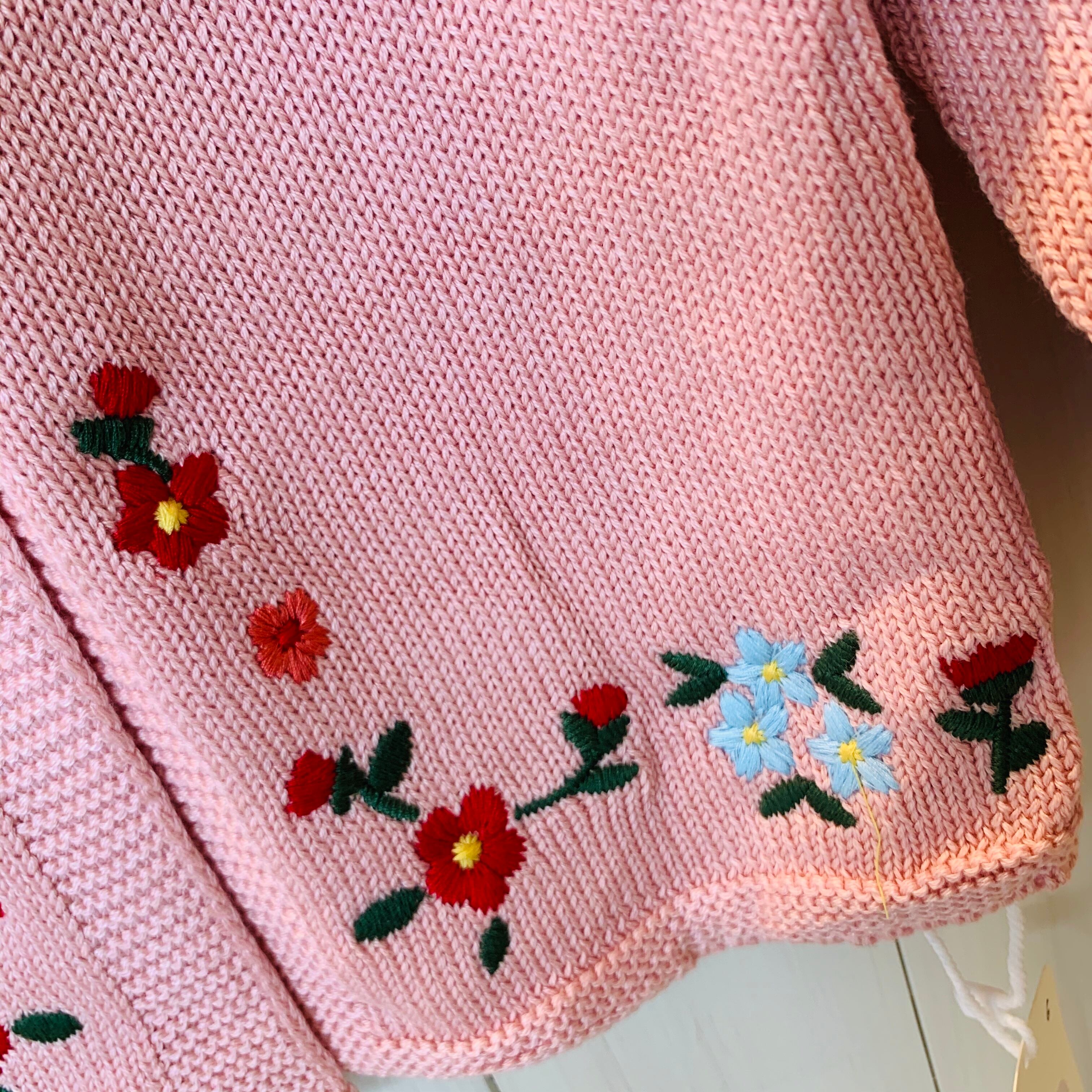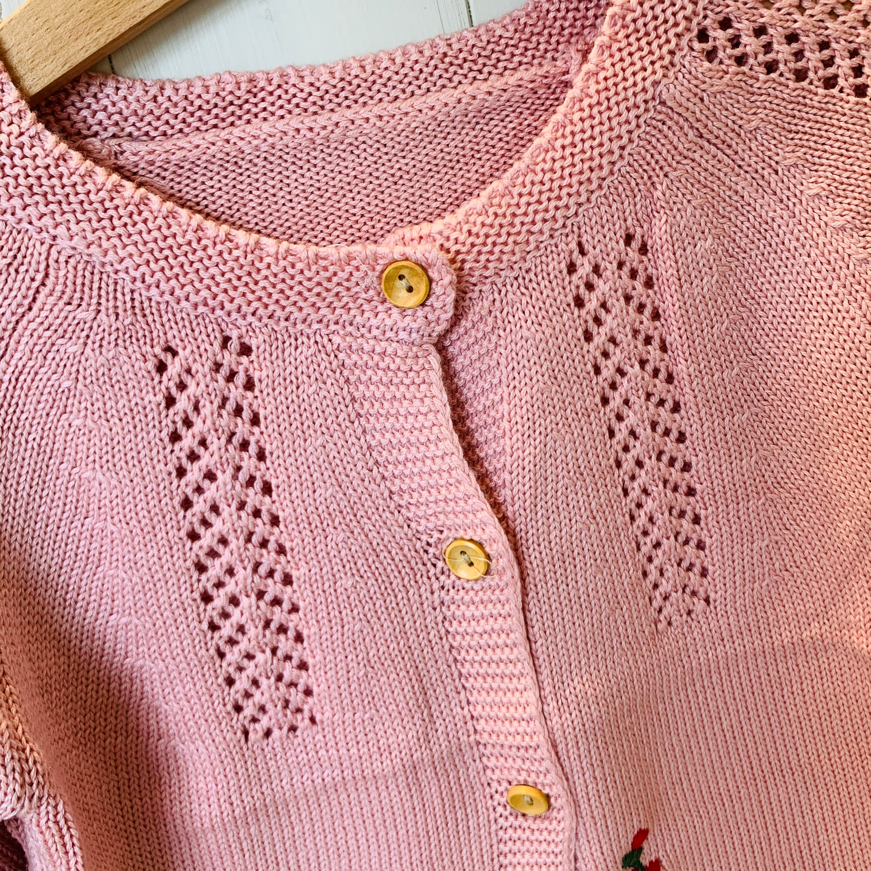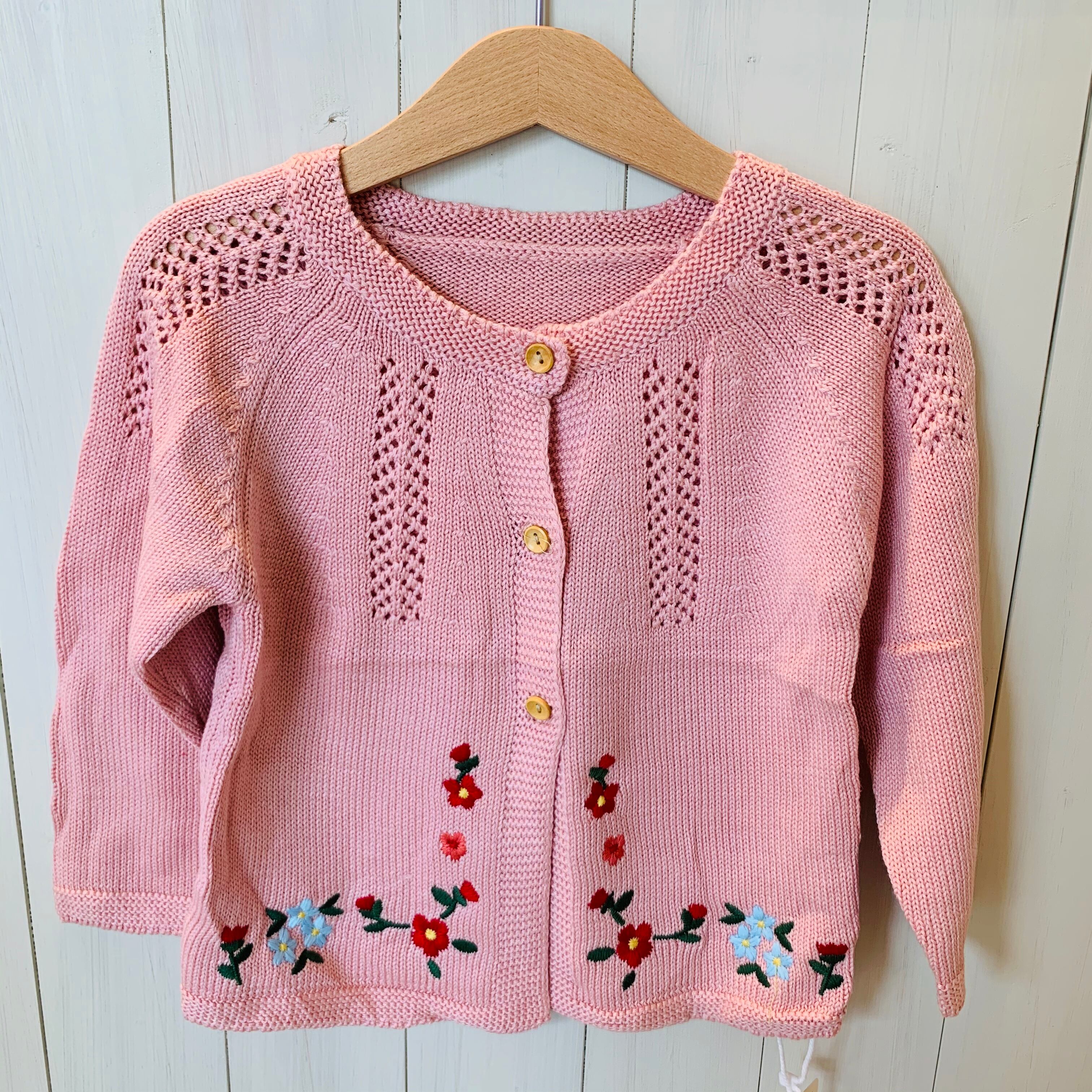 ピンクの刺繍カーディガンです。